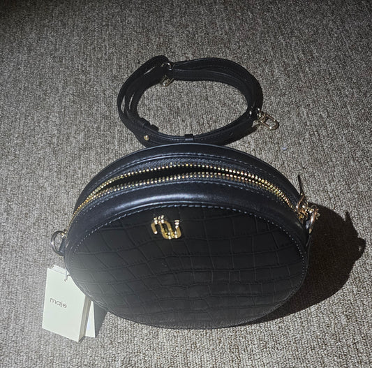 Maje croc embossed shoulder black purse