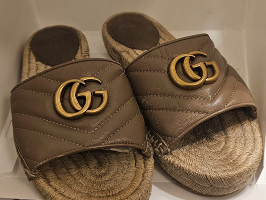 Gucci Beige Marmont Quilted Slide Espadrilles GG Size 36 Flats