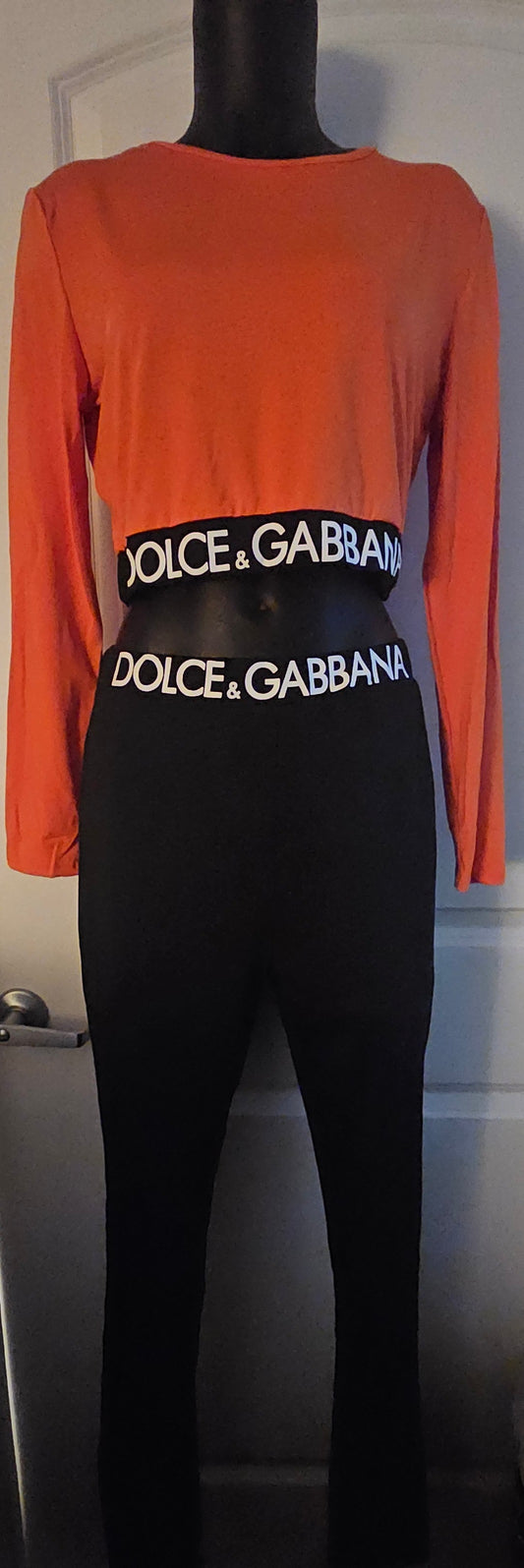 Long-sleeved jersey top with branded elastic with leggins