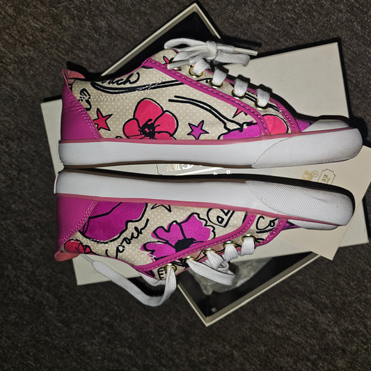 COACH~Barret Poppy Love Design Fuchsia Pink Patent Leather sneakers